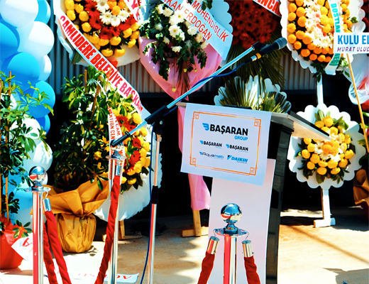 Başaran Group olarak sektörümüzdeki büyümemizi sürdürülebilir kılmak ve iş ortaklarımıza daha hızlı, daha etkin çözümler sunmak amacıyla yeni fabrikamızı ve lojistik depolarımızı hizmete açmış bulunuyoruz. Açılış törenimizi, üst düzey yöneticilerimiz ve kıymetli misafirlerimizin katılımıyla gerçekleştirdik. Törenimize; Yönetim Kurulu Başkanımız Zekeriya Başaran, Yönetim Kurulu Başkan Yardımcımız Mehmet Ali Başaran, Çamlıdere Belediye Başkanı Sayın Adem Ceylan ile birlikte, Daikin Türkiye Genel Müdür Yardımcıları Tuncay Gülsaran ve Olcay Avcı katılım sağladı.